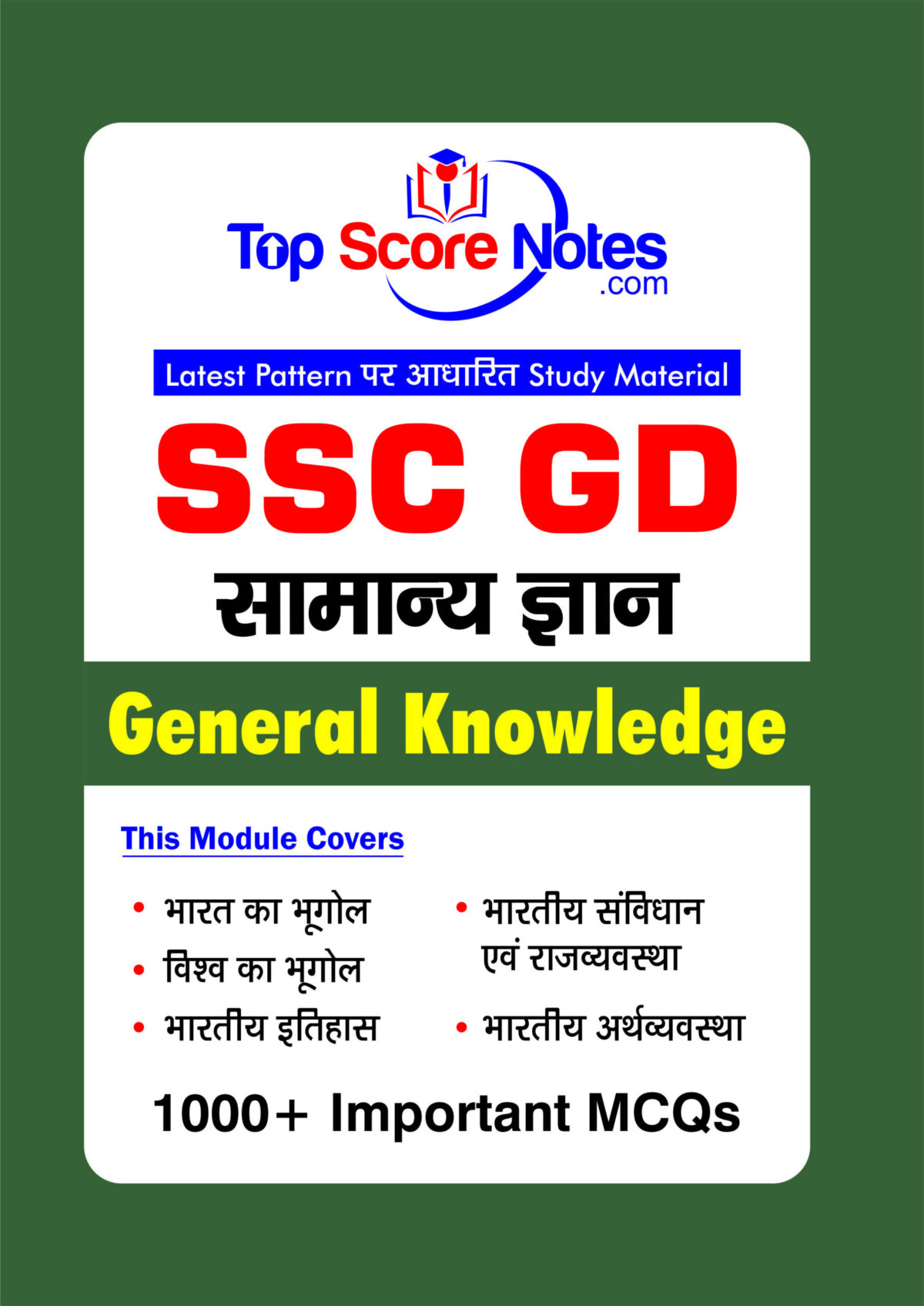 SSC GD सामान्य ज्ञान (General Knowledge) is a comprehensive and exam-oriented book specially designed for SSC GD Constable and other competitive examination aspirants. This book is prepared strictly according to the latest exam pattern, making it highly useful for effective and focused preparation.